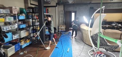 まずは床が数ヵ所陥没してるので床の補修工事!